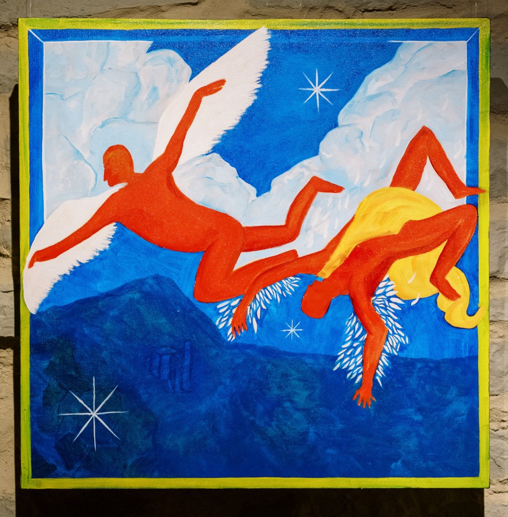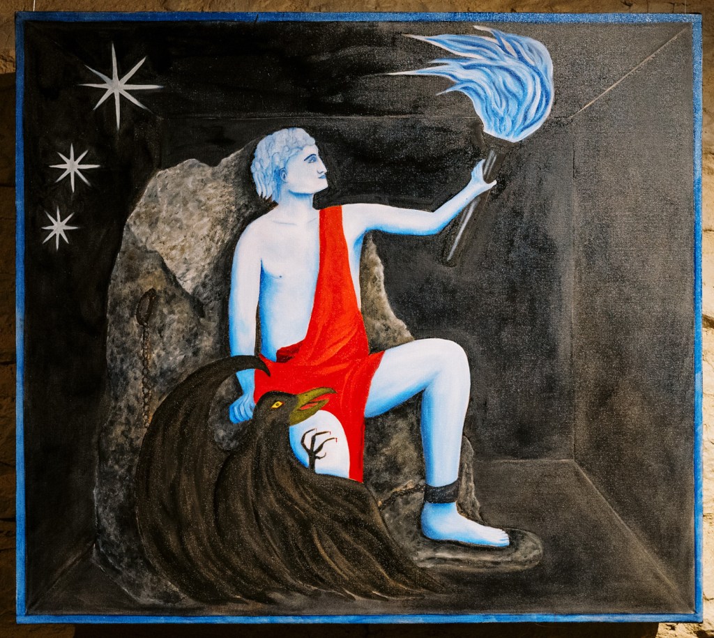 “A Dimly Lit Path” is inspired by the multi-cultural myths that make up humanity’s narrative tapestry. Throughout history, these stories have functioned as frames of reference for both micro and macro-level narratives. The stories upon which a society places value inform that society’s sense of morality, values, and identity. These stories suggest, but not dictate, the behavior and values of individuals within larger social groups as they face struggle and success. The details which make up our day to day lives may fluctuate, but the core essence of the narratives that have made up the cultural fabric of civilizations appear again and again.