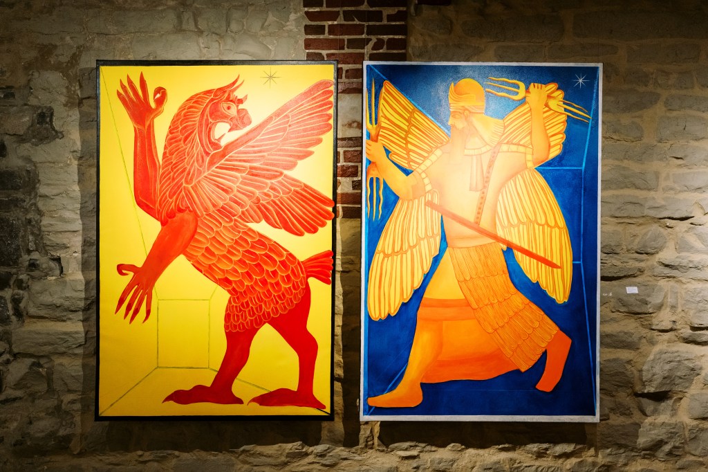 In this exhibition, Germán Rojas reframes and recycles imagery from the global canon of mythology to explore the idea of the monomyth as it relates to our contemporary society. Portrayed are different heroes, monsters, elemental forces, and pitfalls, representing the stages that must be faced in every individual’s journey. Heavily symbolic, the surreal images presented in this exhibition represent the struggles, real and imaginary, that exist within and outside of ourselves as an inherent part of the ever-shifting human experience. The pieces also allude to the compartmentalization of different parts of our narratives, opening space for discussion about the thin lines separating our public and private lives. Apart from reminding the viewer of their role as the hero of their own story, this body of work should also lead to a heightened awareness of belonging to a much larger, never-ending story which is always in flux. The viewer should feel comfort in the knowledge that, as a collective humanity, we must all face similar struggles, defeats, and victories. Our lives follow the dimly lit paths that weave the fabric of humanity’s history through the emptiness of time and space.